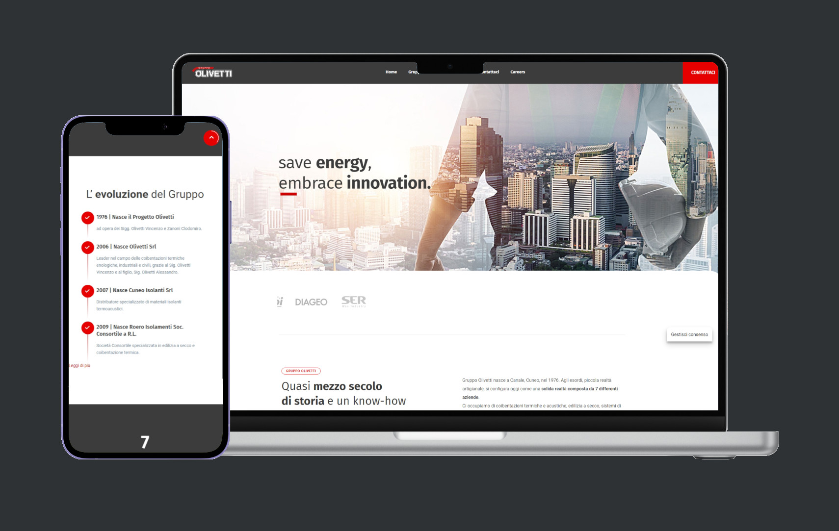 Abbiamo sviluppato il sito web per il Gruppo Olivetti, integrando tutte le loro realtà imprenditoriali in un’unica piattaforma digitale. L’obiettivo era creare un sito che rappresentasse in modo accurato la storia, l’innovazione e la diversità delle aziende del gruppo.